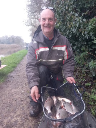 The fishing was hard on Long Lane this Saturday, with Bob Pritchard taking the spoils from peg 6 . . .
